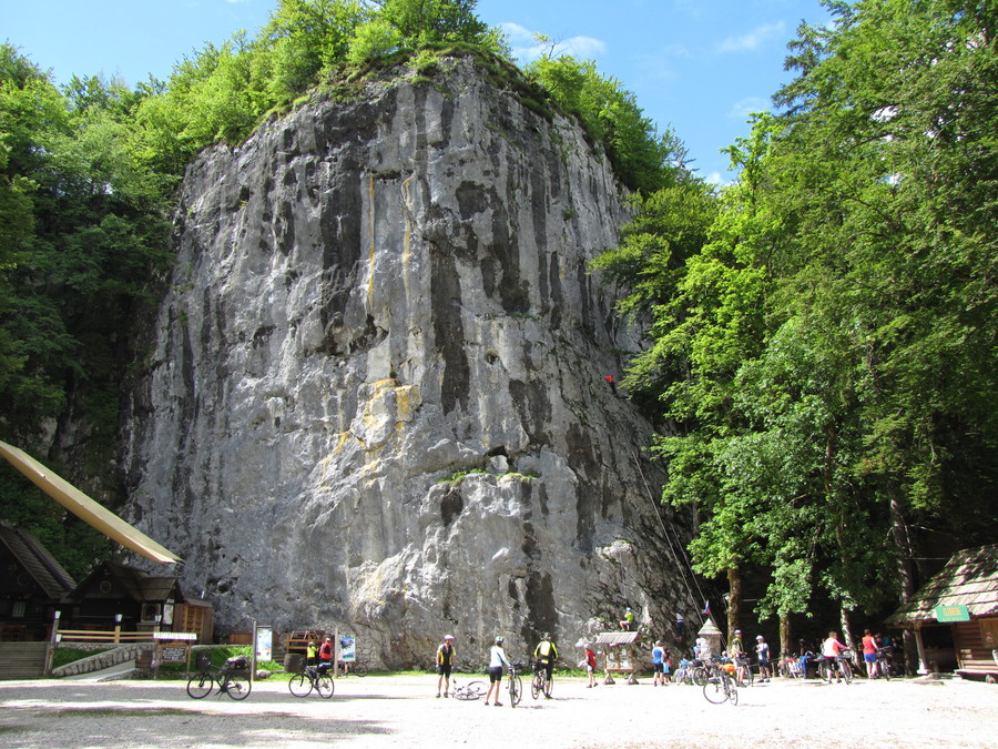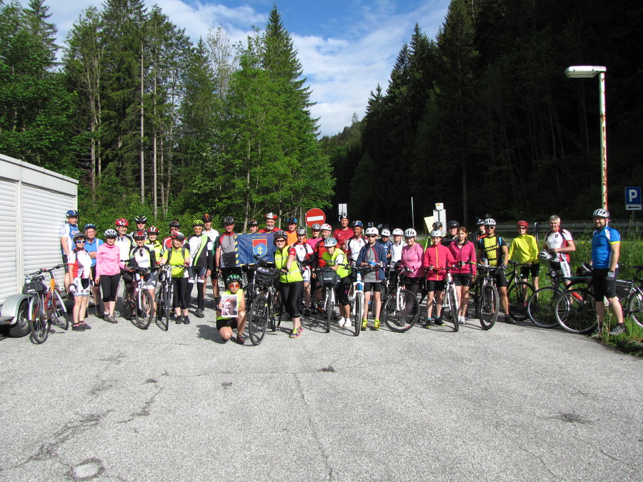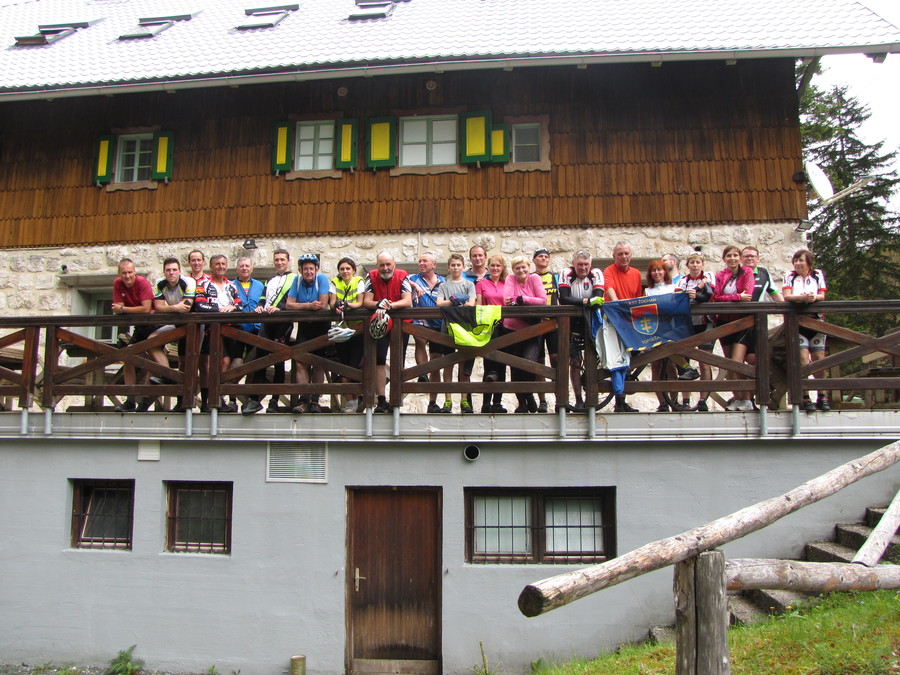 Šofér autobusu, Stano, nás bezpečne doviezol až do Rateče. Tu na parkovisku pri prameni Sávy sa chystáme na naše putovanie. Plní očakávania vyrážame. Chodník nás priviedol k jazeru, ktoré je označované ako prameň rieky Sáva. Voda krásne zelená, vidieť výver vôd. Vchádzame na trasu cyklocesty s označením D2. Krásna udržiavaná krajina. Vrcholce hôr sú v oblakoch. V Kranjskej Gore vidíme areál známeho lyžiarskeho strediska. V Gozd Martuljeku odbočujeme k vodopádu Martuljek. Bicykle máme strážené. Ideme pešo. Voda rieky Martuljek je alpsky priezračná, mohutná. Malými vodopádmi, kaskádami nás vťahuje do svojho vnútra. Vodopád je pekný. Druhý na tejto rieke je pre nás vysoko. Inou cestou sa vraciame k bicyklom. V Mojstrane začíname stúpať na Aljažev dom. Cesta sa dvíha postupne, aby nás neodradila. Zastávku si robíme pri vodopáde Peričnik. Je tu aj chata s občerstvením. Na odbyt ide káva a pivo. Vodopád je z cesty pekný. Kto chce mať však silnejší zážitok, musí prísť až zaň. Je to jeden z mála vodopádov, ktoré sú prístupné aj z druhej strany. Mohutný padajúci prúd sa triešti na skalách dole. Čiastočky vody sú roztrúsené v okolí. Potešení krásou nasadáme na bicykle. Po pár metroch je značka stúpanie 25%. Mám problém udržať predné koleso na ceste. Strmé stúpanie je dlhé. Začína aj mrholiť. Ľudia si to nevšímajú. Majú iné starosti. Aljažev dom je bez návštevníkov. Chatárka sa potešila z nášho príchodu. Vidíme len časť severnej steny Triglavu a zo Škrlatice takmer nič. Využívame pohostenie chaty. Polievky za 5 €, segedínsky guláš za 5,50 €. Odchádzame ešte k pamätníku skoby s karabínou. Je to obľúbené miesto na fotenie. A už nás čaká len cesta na miesto ubytovania. Vidíme, že pred nami prší. Schovávame sa pod diaľničný most. Trochu spŕchlo. Ľudia sú netrpezliví, chcú ísť. Dážď nás pokropil, ale neboli sme veľmi mokrí. Sušiť sme sa začali pri stúpaní na Kočnu. V Blede je uzavretá cesta, nuž hľadáme alternatívu. Vedie nás k jazeru a odtiaľ cez pizzériu po schodoch k nášmu Hostelu 1004. Ubytuvávame sa. Máme izby pre 4, 8 a 12 osôb. Ubytovanie je dobré, aj s malými nedostatkami. Voda v sprchách neodteká, záchody majú na niektorých miestach poruchy. Je pravda, že po upozornení sa nedostatky promptne odstránili. Autobus odchádza parkovať cca 1,5 km ďalej. Príves s bicyklami zostal pri nás. Po prebdenej noci si väčšina líha, ale našli sa j takí, ktorí si boli pozrieť nočný hrad, kde sa chystá veľkolepý program na víkend.