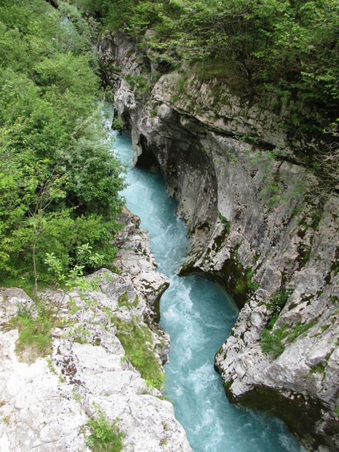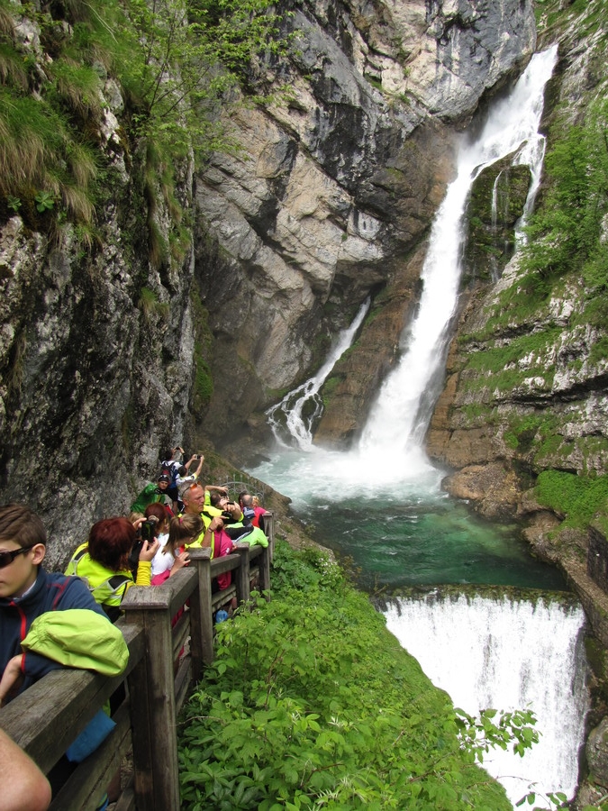 Autobusom sme sa nechali vyviezť až na parkovisko pri doline Vintgar. Prívesný vozík sme nechali v Blede. Tesne pred nami tam dorazil autobus tmavších. Boli pekne oblečení, mali fotoaparáty aj kamery. Vybavili sme si zľavu na vstup. Dospelí platili 3 €. Tiesňava je to nádherná. Vznikla na rieke Radovna. Je tu veľa technických pomôcok. Voda všade. Poriadna riava. Prehliadka sa končí vodopádom a tou istou cestou ideme aj späť. Návštevníci sa kdesi potratili a tak si môžeme tiesňavu ešte raz v pokoji pozrieť. Odchádzame pre vozík s bicyklami. Trasa domov bola aj vďaka výbornému šoférovi, Stanovi, pokojná. Hádam sme ho prehovorili aj na Ukrajinu. Uvidíme.