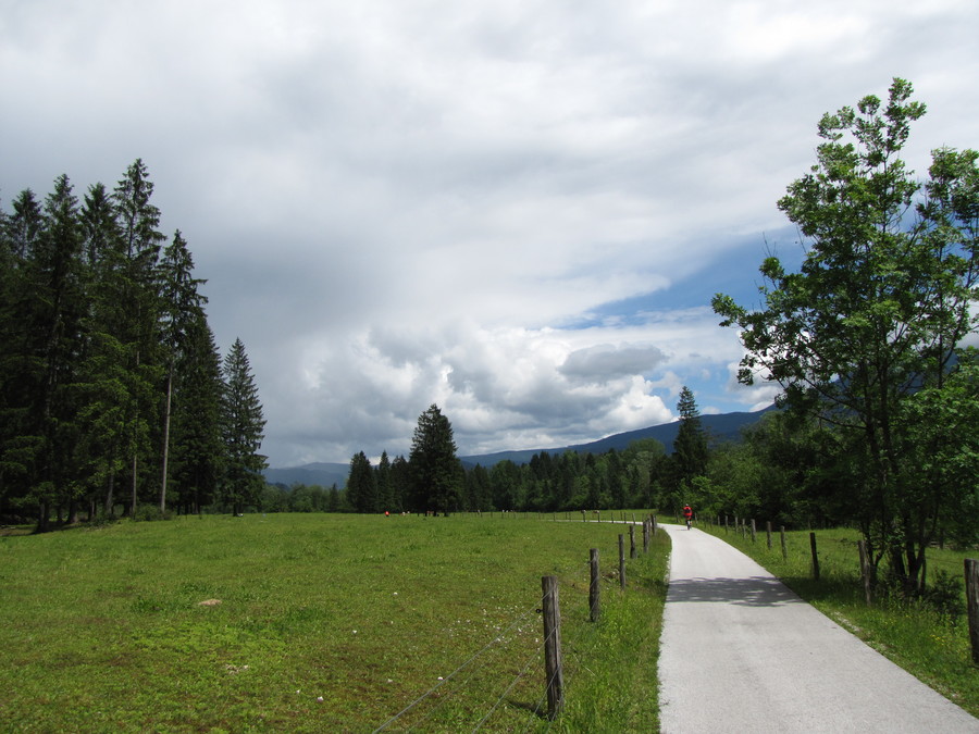 Autobus si prišiel pre prázdny príves. Do autobusu si dávame rezervné oblečenie pre prípad, že nás na trase postihne niečo nepríjemné. Sadáme na bicykle. Ideme okolo autobusovej stanice i jazera Bled. Brzdia nás rozkopávky so semafórmi. Cesta hopsá hore – dole. Je dostatočne široká. Šoféri sú ohľaduplní podľa štátnej príslušnosti. Domáci sa nevyznamenali. Stále nás fascinuje farba rieky. Ideme mimo dedín. Pred Bohinjskou Bistricou odbočujeme na cyklochodník. Kopíruje tok rieky, ale má aj pekné výšvihy. Zastavujeme na okraji Starej Fužiny. Je to prvý dotyk s Bohinjským jazerom, najväčším v Slovinsku. Je aj dosť teplé, pretože doň vyvierajú teplé pramene. Kúpanie, okrem Ivana, nikomu neprišlo na um. Fotíme sa pri kamzíkovi. Dlho. Kúsok ďalej je horolezecká stena, na ktorej visí plno mládeže. Musíme ďalej. Okolo jazera ideme až pred Ukanc. Tam odbočujeme stále po dobrej ceste k chate pri Savici. Je to do kopca, ale po včerajších výšvihoch je to prijateľné. Koča pri Savici nám ponúkla občerstvenie. Popíjame, čakáme na koniec peletónu. Stretli sme sa tu aj s trojicou samostatne pôsobiacich našich členov. My sme spoločne odišli k vodopádu Savice. Cesta tam trvala cca 20 minút. Nikto neobanoval. Prúd vody sa valil po skalách. Mali sme aj šťastie, pretože bol dostatok vody. Pri jej nedostatku sa voda stráca v deravom podzemí. Ťažko sa odchádzalo. Pri ceste späť sa niektorí zastavili pri jednom z mnohých cintorínov z 1. svetovej vojny. Stretnutie sme mali pri kamzíkovi. Tu sme sa videli všetci poslednýkrát. Nadupaná mládež chcela ísť kopcovitým terénom do Bledu. Chcela. Po pár km sme sa stretli. Hlavná časť z cyklocesty odbočila do Bohinjskeh Bistrice. Museli sme ich ísť zachraňovať. Počasie sa trochu pokazilo, ale súvislého dažďa sme sa nedočkali. Roztrúsení sme prichádzali na ubytovňu. Bicykle sme si odniesli do prívesu, pretože ráno nás vyvezie na trasu autobus. Večer bol ešte ďaleko. Viacerí využili voľný čas na prehliadku Bledu. Cez víkend sa budú konať hradné slávnosti. Prípravy boli v plnom prúde. Na krásnu vyhliadku na jazero Bled sme sa museli dostať cez zákaz vstupu. Na jazere je čulý ruch. Veslári tvrdo trénujú, na ostrov plávajú koráby s návštevníkmi. Najväčšiu radosť z nás mali asi v pizzérii. Zoznamovací večierok po izbách sa skončil o 22:00.