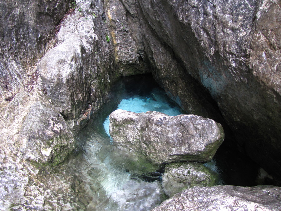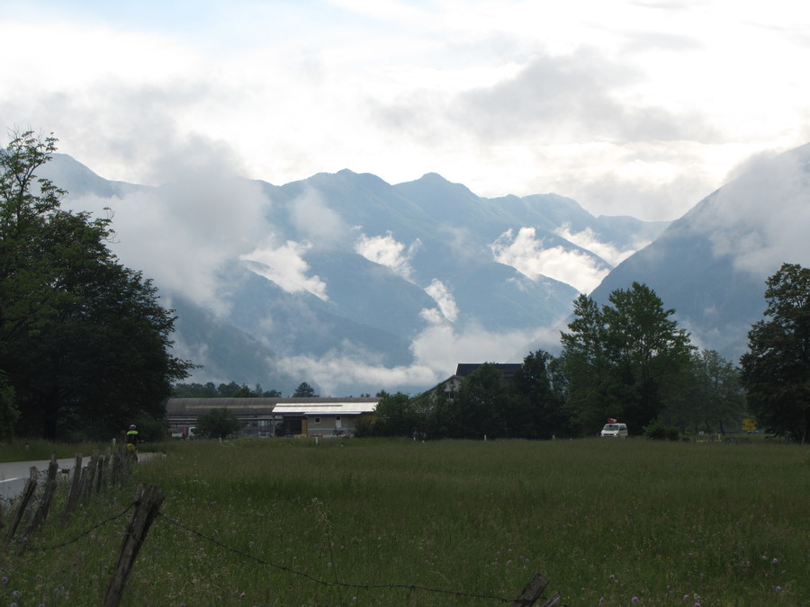 Nikto z nás nepredpokladal, že bicykle osedláme až po 4 hodinách jazdy busom. So šoférom sme preberali kadiaľ bude najvhodnejšie. Vybral si cestu kratšiu cez hory. Bol veľmi odvážny. Čakali nás viaceré protismerné zatáčky na úzkych cestách. Zvládol to vynikajúco. Cesta bola zážitkom aj pre nás. Často bolo počuť ťažké vzdychy pri pohľade do strmých dolín. Mali sme deficit času, nuž sme sa nechali vyviezť čo najvyššie. Na malom parkovisku sa otočil autobus bez vleku, ten sme otočili a zapojili my. Rieka Soča sa tu hlboko zarezáva do vápencového podložia. Stojíme fotíme. Cesta neustále stúpa. Sme roztrúsení na niekoľko km. Idúc vedľa botanicke záhrady Alpinum Julijana si hovorím, že pri spiatočnej ceste sa tu zastavíme. Pri odbočke k prameňu Soče sa oddelili cyklisti, ktorí chcú zdolať sedlo Vršič. Čaká ich ešte 800 výškových metrov. Začína mrholiť. V chate pri prameni Soče sú už naši zasedení. Cesta k prameňu je na poslednom úseku zaistená lanami. Veľa ľudí sa tam nezmestí. Prehliadka trvá trochu dlhšie. Spúšťame sa dole. Je nám zima. Dážď šľahá. Pri Alpinum Julijana sa v duchu ospravedlňujem kvetinkám, že dnes to nejde. Pred Kal-Koritnicou sme chceli ísť vedľa Soče a vyhnúť sa tak stúpaniu i mestu Bovec. Asi po 500 metroch nám voda zobrala cestu. Poslušne sme sa vrátili na asfaltku. Autobus s prívesom nás čakal na parkovisku pri vodopáde Boka. Aj sme ho fotili, ale bol priamo proti slnku. Definitívne sme naložili bicykle, počkali na horských jazdcov zo sedla Vršič a cestou cez sedlo Predel sme odštartovali. Počasie sa umúdrilo. Bolo slnečno s kopovitou oblačnosťou. Už cestou sme híkali. Otvárali sa nám výhľady na štíty Mangart a Jalovec. Ostatné sme nepoznali. V sedle sme si urobili aj fotozastávku. Peknou širokou cestou sme sa cez Taliansko vrátili do Bledu.