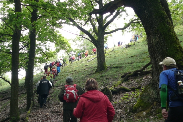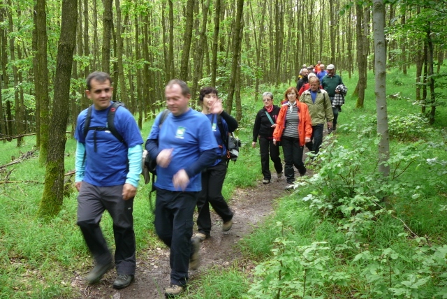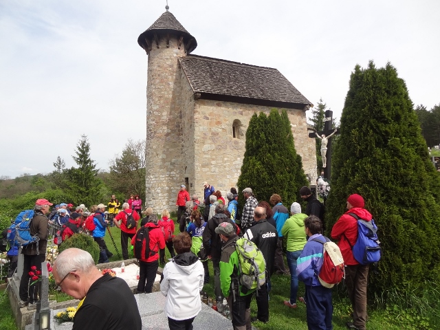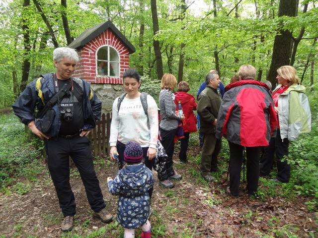 Vyrážame. Prvá zastávka je na cintoríne pri kostolíku sv. Michala. Šéfredaktor podáva parádny výklad o histórii tohto miesta. Nasleduje lesná cestička ku kaplnke sv. rodiny, nachádzajúcej sa na hranici klížskeho a kolačianskeho chotára. Po krátkej pauze pokračujeme chodníkom na Michalov vrch. Cestu nám spríjemňuje po výdatných dažďoch svieži vzduch a neuveriteľne zelená príroda. Na vrchole opäť krátky výklad z dejín. Viacerí využívajú možnosť pokochať sa krásnym výhľadom zo severnej strany kopca. Odchádzame smerom na Vrchhoru, ďalšie historické miesto. Spoločná fotografia prináša ako vždy množstvo humorných poznámok, ale všetci trpezlivo vydržíme. Zostáva nám ešte vyškriabať sa na Malú Ostrú. Prudké, krátke stúpanie nás všetkých poriadne rozdýcha a na vrchole sa môžeme potešiť opäť peknými pohľadmi do okolia.